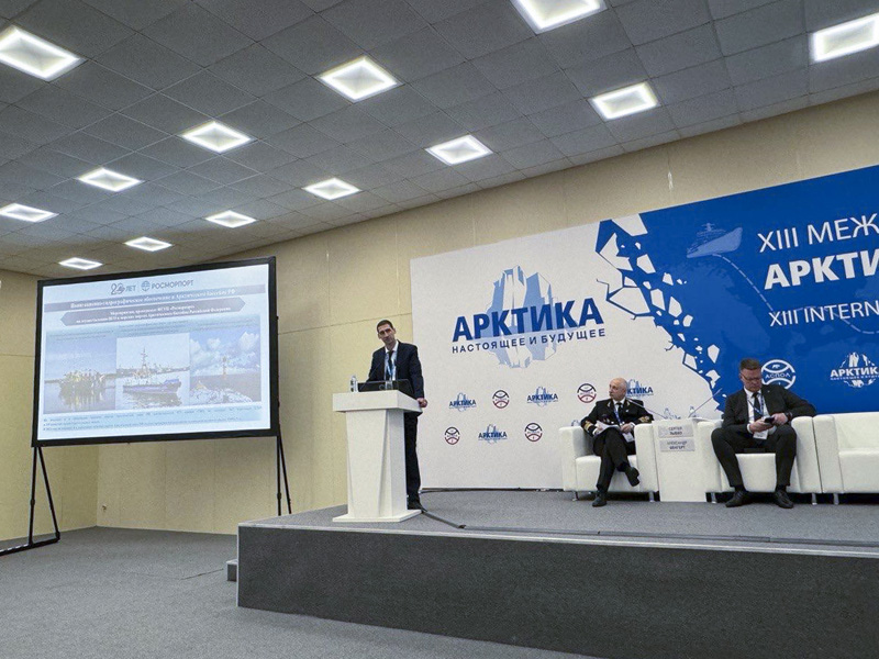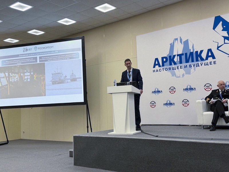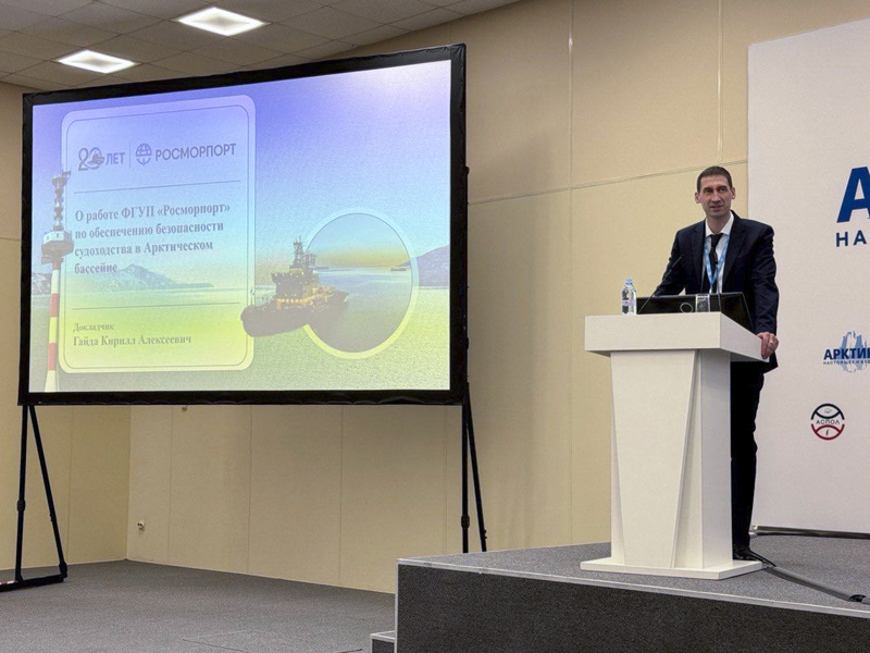 During the conference “Northern Sea Route-365?” Kirill Gaida shared the experience of FSUE “Rosmorport” in ensuring the navigation safety in the Arctic basin, emphasizing in his report that the Murmansk, Arkhangelsk and North-Eastern Basin branches of the enterprise operate in this area. FSUE “Rosmorport” provides a whole range of services in the seaports: pilotage, icebreaking, towage, dredging, geodesic, hydrographic services, navigation services with the use of vessel traffic systems (VTS), communication services, ice advisors and captain's advisors services, services on training for pilots on vessels, services on production, installation, repair and maintenance of navigation equipment.