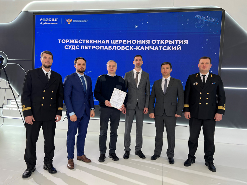 The solemn event in Moscow was attended by Andrei Kozlov, Deputy Director of the Department of State Policy for Maritime and Inland Waterway Transport of the Ministry of Transport of Russia, Kirill Gaida, Deputy General Director for Navigation Safety of FSUE “Rosmorport”, Andrey Kuropyatnikov, Director General of FSUE “Morsviazsputnik”, Sergey Sokolov, Vice-Rector of Russian University of Transport, as well as Vyacheslav Ukhanov, senior expert of the Expertise and Engineering Department of the Main Directorate of FAI “Russian Maritime Register of Shipping”.