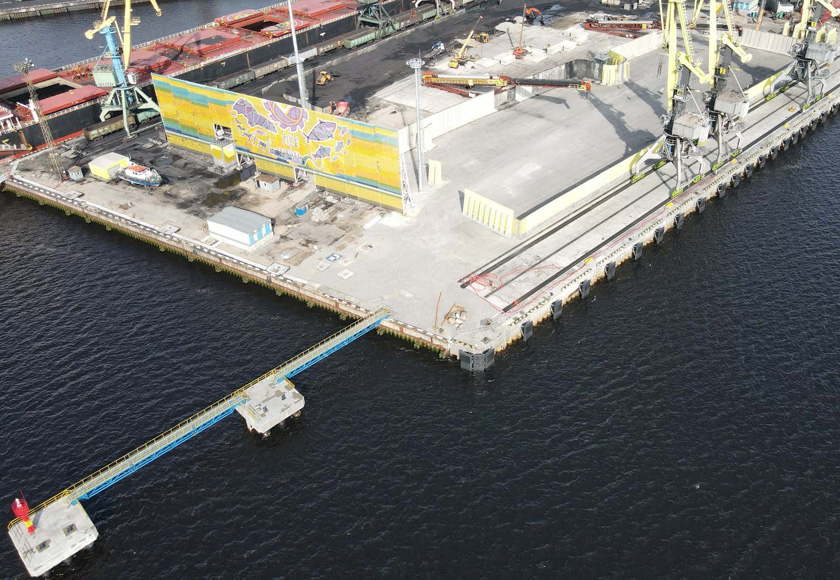 As part of the reconstruction, the old berth was dismantled, the pile foundation was driven (face and anchor wall), anchor rods were installed and backfilled, the berth capping, crane tracks and berth cover were organized.