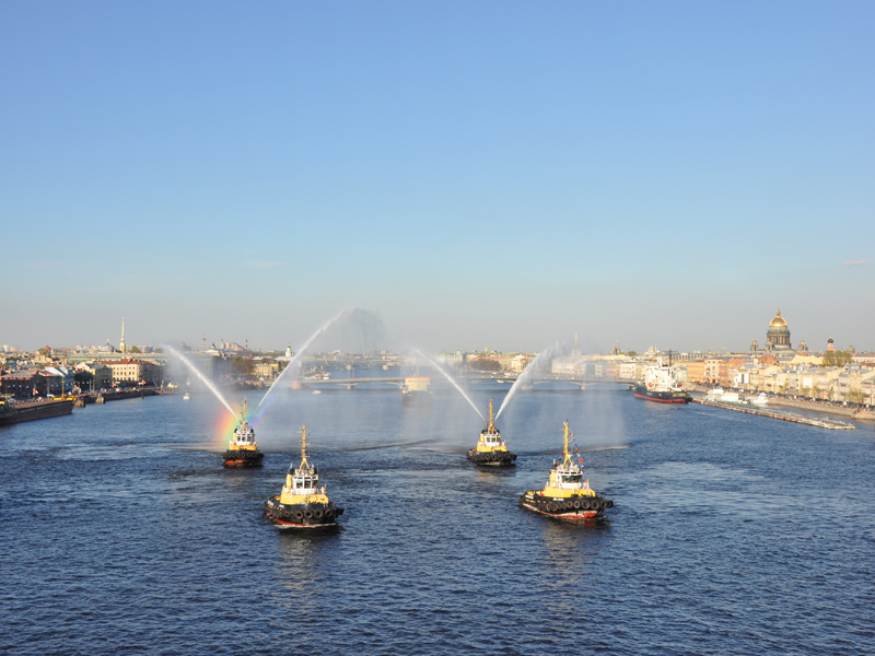 The enterprise's icebreakers will be moored at the Lieutenant Schmidt embankment on Vasilyevsky Island and open to the public throughout the festival days. Visitors will be able to come on the decks of the icebreakers and get acquainted with the unique engineering structures of these vessels and the way of life on board. The traditional waltz of tugboats on the Neva river will be a bright accent of the festival. During the unique “dance” the tugboats will spin synchronously, releasing powerful water fountains.