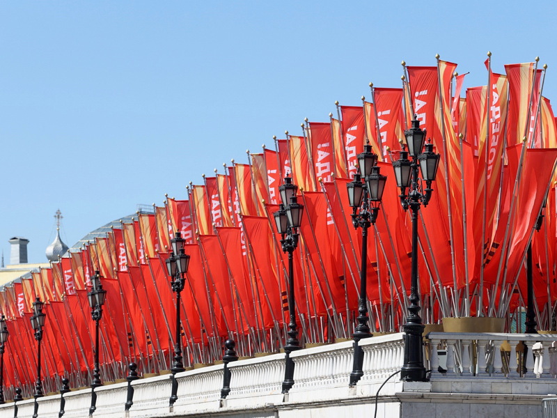 The event ended with the parade of the Presidential Regiment's guard of honor and the laying of flowers by transport workers at the monuments on the Alley of Hero Cities and Cities of Military Glory in Alexander Gardens.