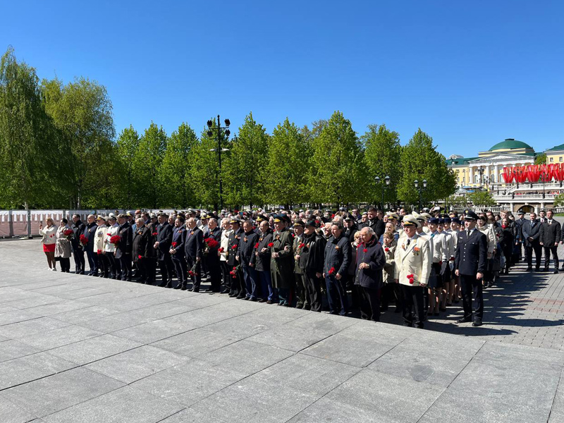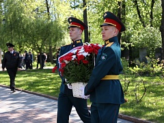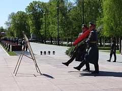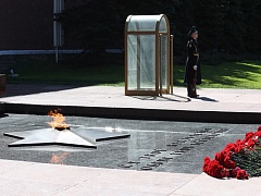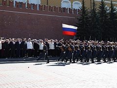 The participants of the patriotic event also honored the memory of the heroes who died in battles for freedom and independence of the Fatherland by laying a wreath and flowers at the Eternal Flame at the Tomb of the Unknown Soldier in the Alexander Gardens. The solemn ceremony was accompanied by the orchestra of the Preobrazhensky Regiment.