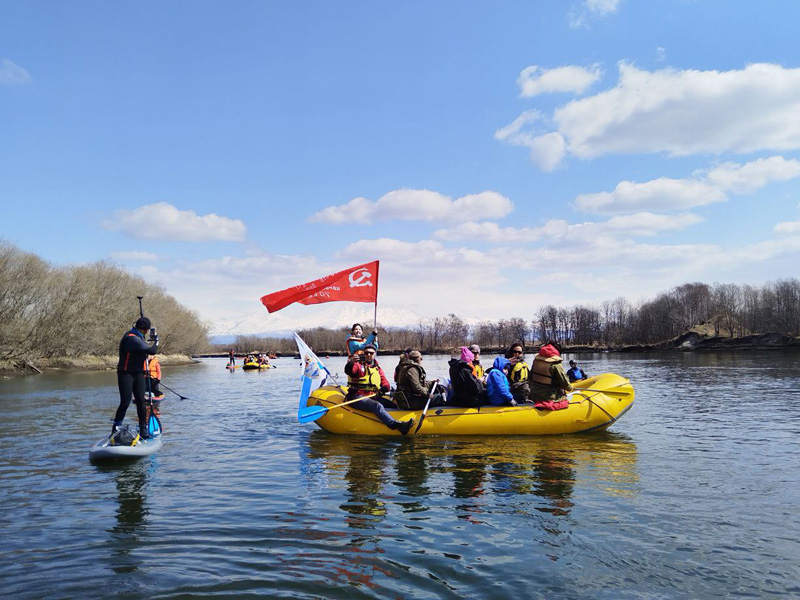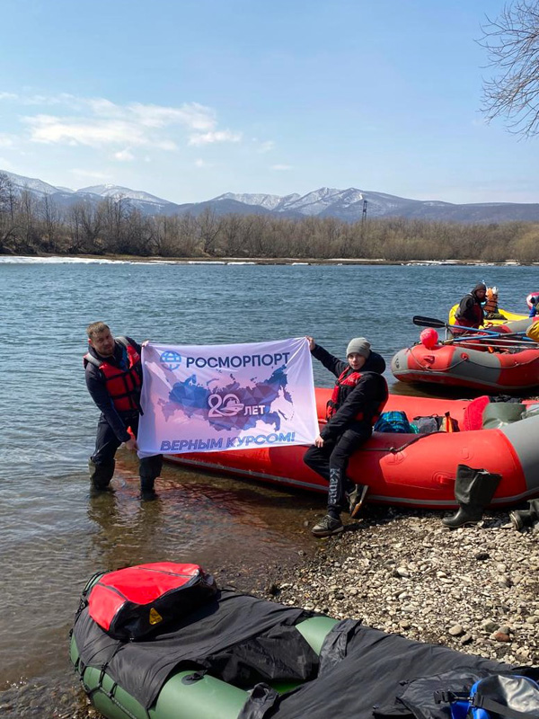 On May 10, the FSUE “Rosmorport” Petropavlovsk Branch organized a collective rafting trip with of 18 km on rafts and packrafts along the Avacha River in the Kamchatka Region. Employees of the branch and their families took part in the tourist event dedicated to the memory of the heroes of the Fatherland.