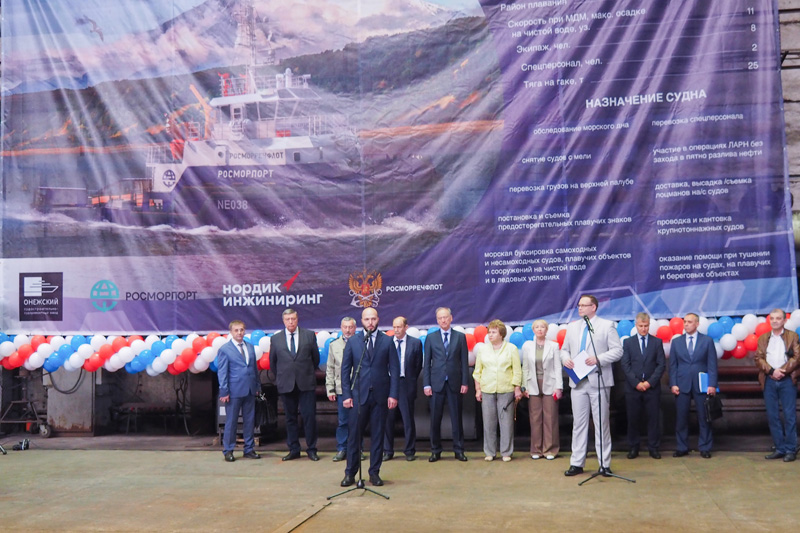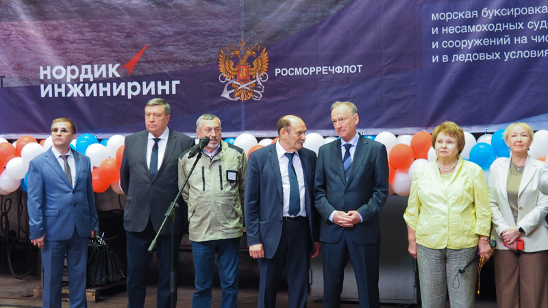 The solemn event was attended by Assistant to the President of the Russian Federation Nikolai Patrushev, Deputy Secretary of the Security Council of the Russian Federation Sergey Vakhrukov, Deputy of the State Duma of the Federal Assembly of the Russian Federation from the Republic of Karelia, Deputy Chairman of the State Duma Committee for the Development of the Far East and the Arctic Valentina Pivnenko, First Deputy Head of the Republic of Karelia – Prime Minister of the Government of the Republic of Karelia Alexander Chepik, Deputy Head of Rosmorrechflot Boris Tashimov, Chairman of the Board of Directors of Nordic Engineering, JSC Nikolay Shablikov, Director of the Onega Shipyard Vladimir Maizus, and other honored guests.