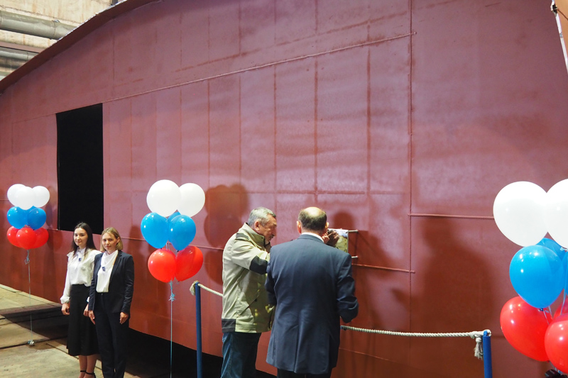 “Together we are starting a completely different life,” said Vladimir Maizus, Director of the Onega Shipyard, addressing his team. – A new complex is being built behind the fence, planned to be launched this year, and the tugboat that we are laying today is the first vessel that will operate at new capacities and will be built on completely different equipment with different technologies. The technologies which are creating for us by the scientists from the shipbuilding institute are the technologies of tomorrow”.