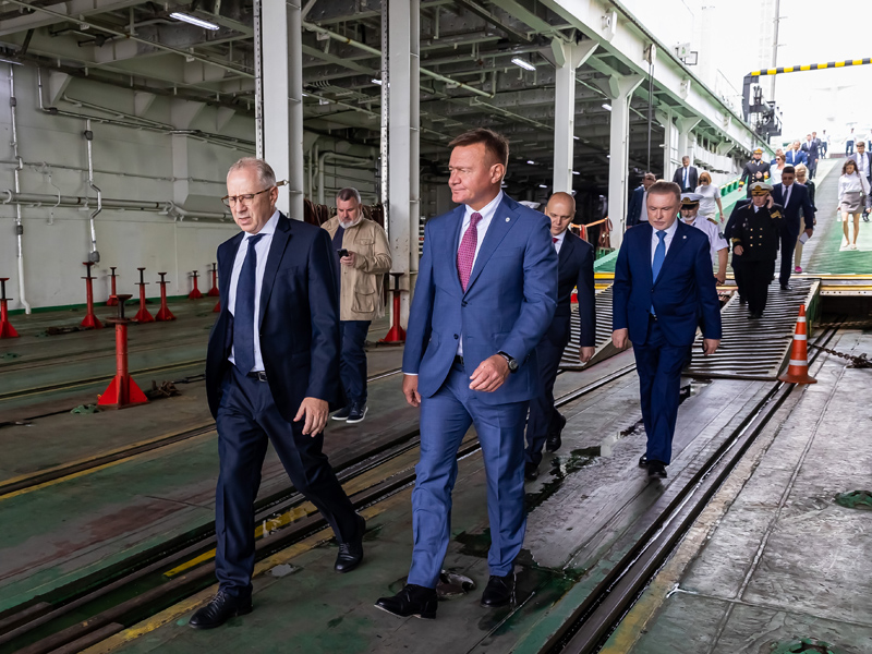 Roman Starovoit, Minister of Transport of the Russian Federation, Aleksander Poshivai, Deputy Minister of Transport of the Russian Federation, and Aleksey Besprozvannykh, Acting Governor of the Kaliningrad Region, paid a working visit to the Railway Ferry Complex in Baltiysk, Kaliningrad Region.