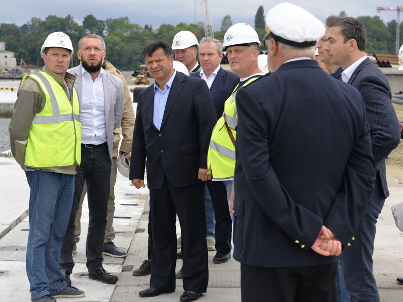 Andrey Tarasenko, Head of Rosmorrechflot, and Sergey Pylin, General Director of FSUE “Rosmorport”, visited the town of Pionersky, Kaliningrad Region, in order to inspect the construction of an international sea terminal for cruise and cargo-passenger vessels.