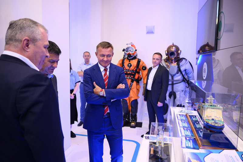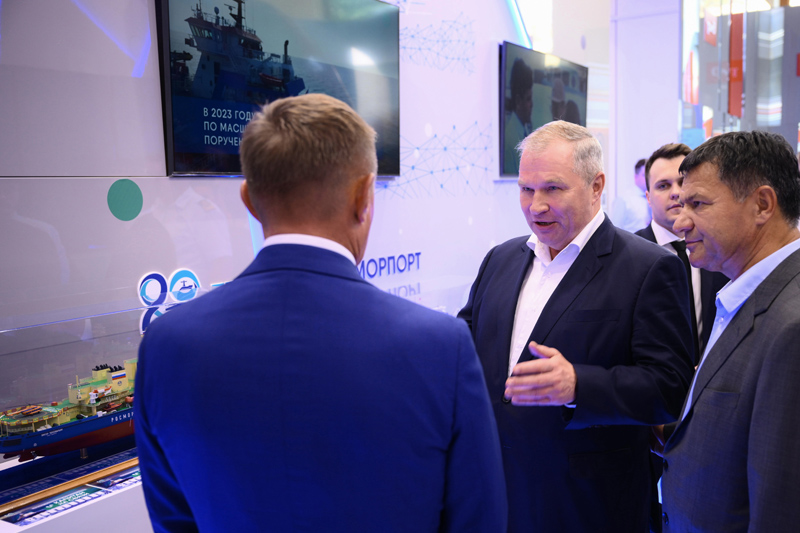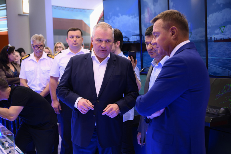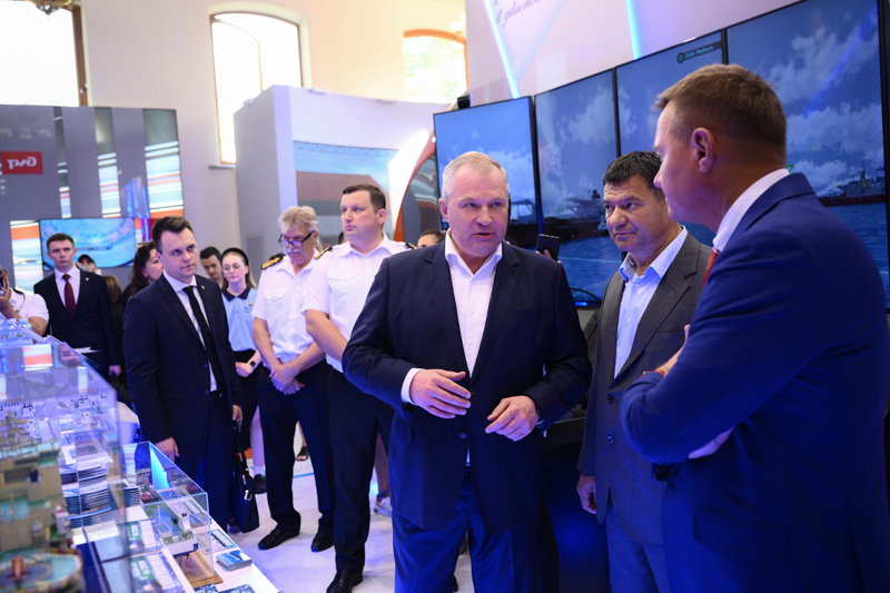 Roman Starovoit, Minister of Transport of the Russian Federation, made an official tour around the Russia in Motion Exhibition, one of the key participants of which being FSUE “Rosmorport”. The joint exposition of the Ministry of Transport of Russia is located in Pavilion 15 “Povolzhye” at VDNKh as part of the International Russia Expo.