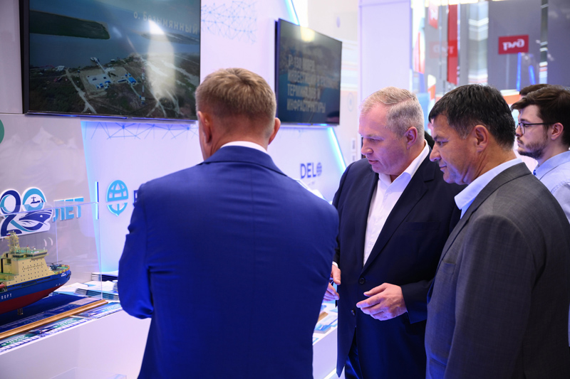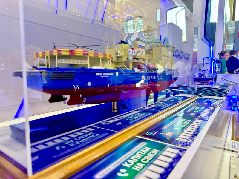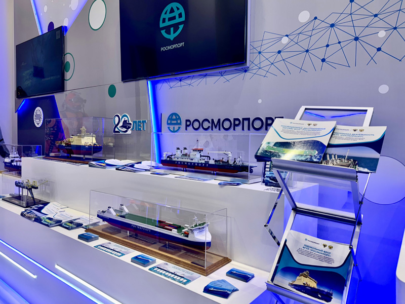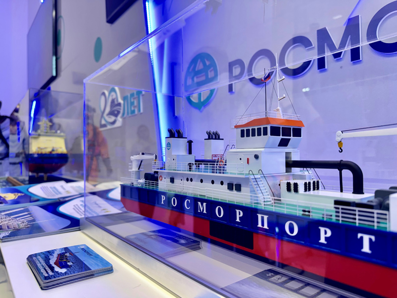 The exhibition features models of the world's largest and most powerful diesel-electric icebreaker Viktor Chernomyrdin of 22600 project, an innovative dual-fuel ferry of CNF19M project General Chernyakhovsky, a high-performance dredger Pyotr Sablin, which is part of the country's largest group of dredging vessels of FSUE “Rosmorport”, engaged in large-scale work at the Volga-Caspian sea shipping canal (VCSSC), which is an important part of the international North–South transport corridor. FSUE “Rosmorport” also presents a model of the new dredger Nikolay Rusanov, which is in the final stage of testing and will soon replenish the enterprise's fleet and begin dredging operations at VCSSC.