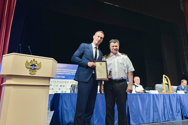 At the end of the meeting, Andrey Tarasenko presented certificates of merit and gratitude to the best employees of Rosmorrechflot and subordinate organizations. Denis Matuzov, Head of the operation service of the automobile and railway ferry complex of the Ust-Luga Department of the FSUE “Rosmorport” North-Western Basin Branch, received a Letter of Gratitude from Head of Rosmorrechflot for his labour achievements and many years of conscientious work.