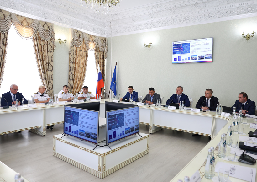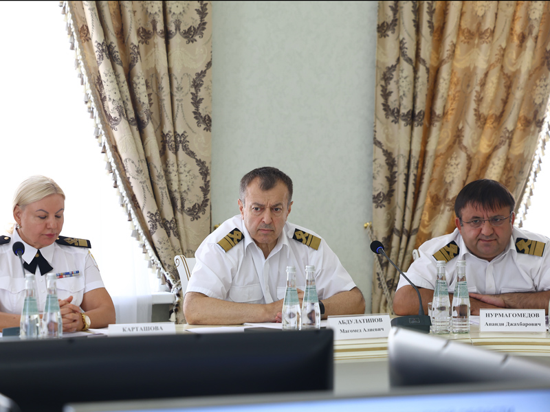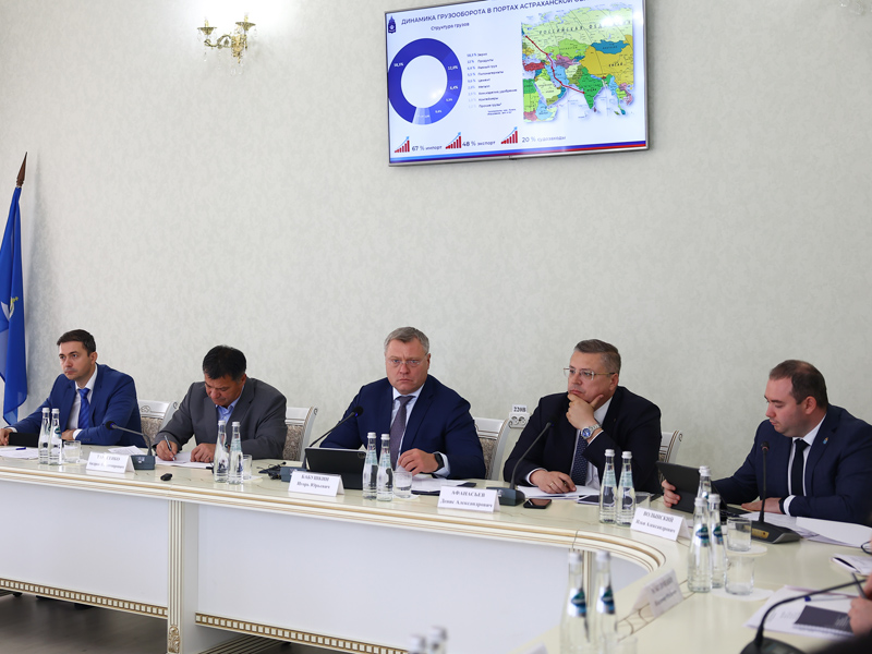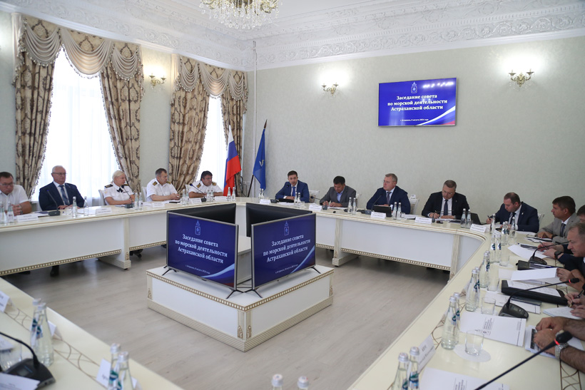 On August 8, Andrey Tarasenko, Head of Rosmorrechflot, Vladimir Abornev, Deputy General Director for Capital Construction of FSUE “Rosmorport”, and Apandi Nurmagomedov, Director of the FSUE “Rosmorport” Astrakhan Branch, took part in the meeting of the Council for Maritime Activities under Governor of the Astrakhan Region Igor Babushkin. The meeting was dedicated to the interim results of the work of the Astrakhan Region port complex and the development of the Volga-Caspian Sea Shipping Canal (VKSSC).