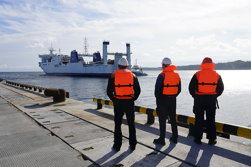 As part of the terminal construction project, a permit has been obtained for the commissioning of berth No. 1 with a length of 164 m, a shore ramp with a length of 35 m, and a water area with navigational depths of 7.5 m and an area of 30.4 hectares. In accordance with the developed technical documentation, vessels up to 191 m in length are allowed to moor to the berth.