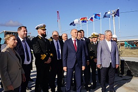The implementation of the project for the construction of an international sea terminal and port infrastructure is going on. At the moment, the following infrastructure is being built at the facility: berth No. 2, protective structures, auxiliary buildings and structures located in the coastal part of the terminal. The works are being carried out under the control of FSI “Rostransmodernizatsiya”. At the same time, the construction of the passenger terminal building and a number of other port infrastructure facilities is underway at the expense of FSUE “Rosmorport”.