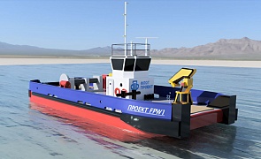The vessels of the FPW1 project are universal multipurpose vessels designed for various marine operations, including pushing/towing, working with buoys and anchors, auxiliary works during dredging, cargo and personnel transportation, fuel and water supply.