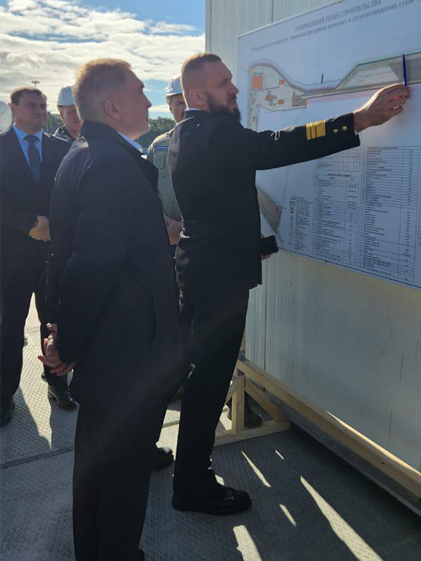 Head of FSUE "Rosmorport" reports to Deputy Minister of Transport of Russia Alexander Poshivai on the progress of construction of the international sea terminal for cruise and cargo-passenger vessels