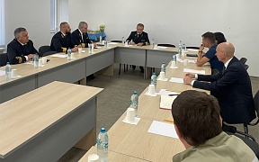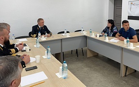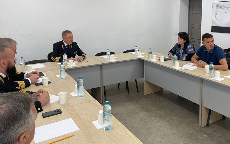 During the working trip, an off-site meeting was held under the leadership of Alexander Poshivai. During the meeting reports were heard from the heads of organizations participating in the construction of the international sea terminal: FSUE "Rosmorport", FSI "Rostransmodernization", FSBI "Marine Rescue Service" (Morspassluzhba) and GEOISOL LLC.