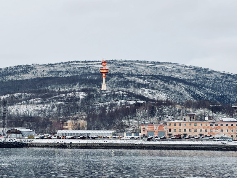 The seaport of Murmansk is located in the Kola Bay of the Barents Sea. It is the largest polar port in Russia, open for ocean vessels year-round.