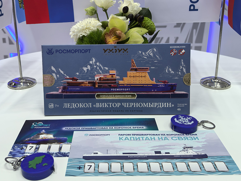 In the days of the largest industry event, an entertainment program was organized at the enterprise's stand for guests of the exhibition and forum participants. The visitors took part in a competition and a quiz on the knowledge of the diesel-electric icebreaker fleet of FSUE “Rosmorport” and received souvenirs from the enterprise. The main prize was a prefabricated model of the flagship of the enterprise's fleet, the icebreaker Viktor Chernomyrdin. Everyone could also take pictures against the background of a digital installation at the enterprise's booth, demonstrating the work of icebreakers in the harsh conditions of the north. The icebreaker Viktor Chernomyrdin became the main hero of the unique facility. Thanks to the interactive content specially prepared for the exhibition in 5D format, viewers could travel to the Arctic, see how the engines (azipods) that pave the vessel's way through the ice work, and also find themselves on the command bridge of the largest non-nuclear icebreaker in the world.