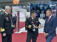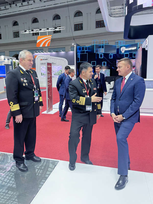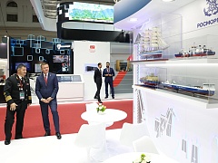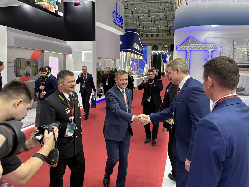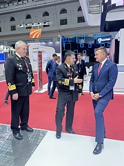 On the second day of the exhibition, Sergey Pylin, General Director of the enterprise, took part in the official tour around the exposition made by Roman Starovoit, Minister of Transport of the Russian Federation. Andrey Tarasenko, Head of Rosmorrechflot, reported to the minister on the situation in the water transport industry.