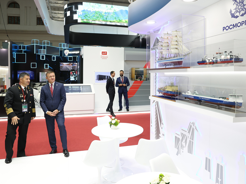 During three exhibition days, the FSUE “Rosmorport” booth was open for guests and participants of the largest business event in the transport industry as part of the joint exposition of the Federal Agency for Marine and River Transport (Rosmorrechflot). At the exposition, models of the leading vessels of the world's largest service and auxiliary fleet were presented: the largest and most powerful non-nuclear icebreaker Viktor Chernomyrdin, the innovative dual-fuel ferry Marshal Rokossovsky, the newest the dredger Nikolay Rusanov, the latter being also exhibited in the zone of priority projects of the Ministry of Transport of Russia, and the sailboat Mir, the fastest frigate on the planet and one of the key training vessels where cadets of maritime universities undergo navigation practice.