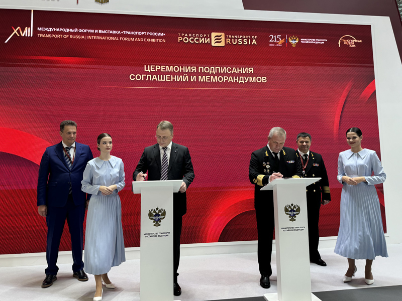 At the end of the industry event, a solemn ceremony of signing the contract between FSUE “Rosmorport” and Novaya Pristan LLC on the construction of the federal property facilities as part of the project “Construction of Berths No. 22A and No. 23A of Pier 3A of the seaport of Novorossiysk” was held in the exhibition area of priority projects of the Ministry of Transport of the Russian Federation.