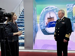 The head of the enterprise gave an interview to RBC TV, talking about the vessels of FSUE “Rosmorport” presented at the exhibition and the enterprise's plans for the development of the service and auxiliary flotilla. This year, the fleet of FSUE “Rosmorport” was joined by the high-performance dredger Nikolay Rusanov, which began operation at the Volga-Caspian Sea Shipping Canal, and the bilge water removing ships Koporye and Koppi. General Director also highlighted plans to upgrade the fleet, including the construction of new icebreakers, tugboats, dredgers, support vessels, bilge water removing ships and oil garbage collectors.