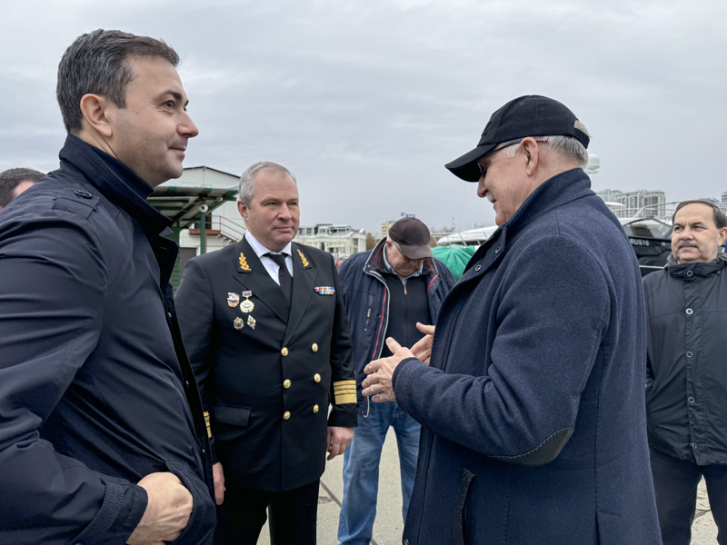 The head of FSUE “Rosmorport” also held a meeting with Vladimir Silkin, General Director of Otelstroy LLC. They discussed the progress of the repair of berth No. 14 in the seaport of Sochi and the concept of development and improvement of the mooring line used for yacht staging.