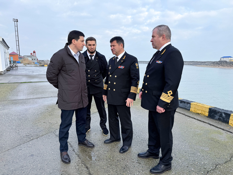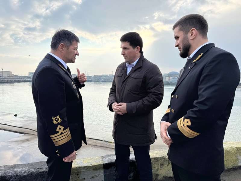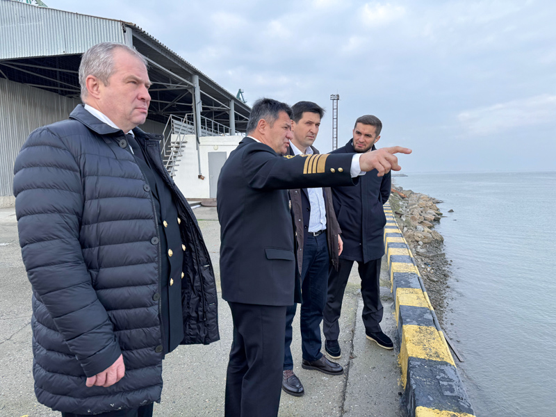 During the visit to the seaport, Andrey Tarasenko and Sergey Pylin held a meeting with stevedores, shipowners, shippers and consignees. It was attended by Rizvan Gazimagomedov, Deputy Chairman of the Government of the Republic of Dagestan, and Jamal Aliyev, General Director of Makhachkala commercial seaport JSC.