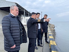 Andrey Tarasenko, Head of Rosmorrechflot, and Sergey Pylin, General Director of FSUE "Rosmorport", inspected the facilities of the Makhachkala commercial seaport, including newly created land plots, the territory of the Fishing Port and the Makhachkala Vessel Traffic System (VTS).