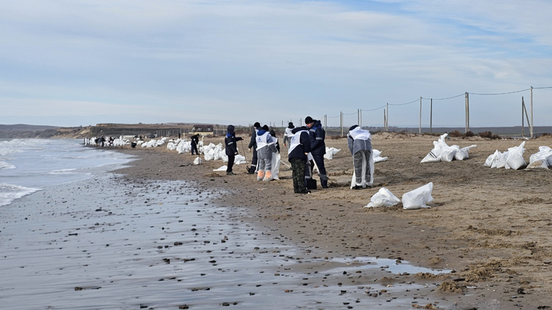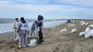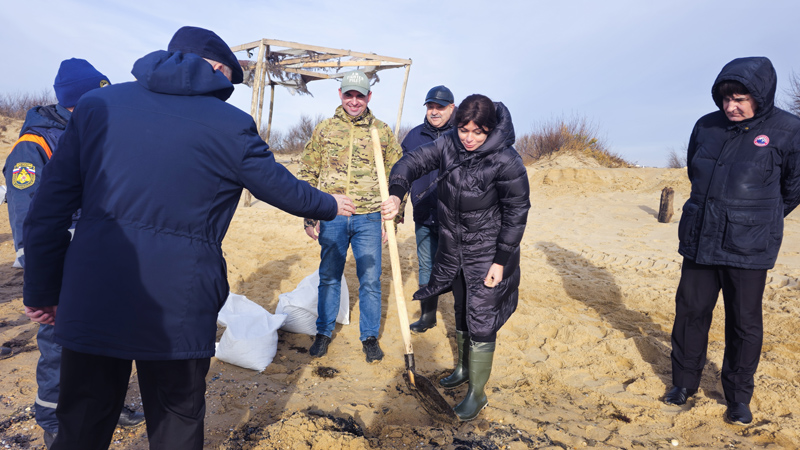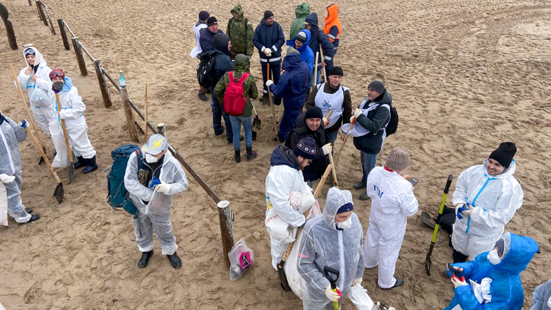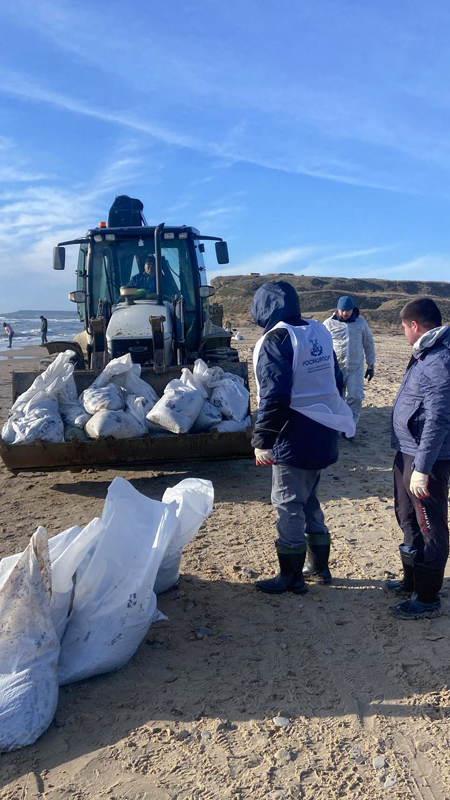On December 22 and 23, a group of employees of the Azovo-Chernomorsky Basin Branch from Novorossiysk and from Taman Department, as well as their family members, went to the village of Veselovka, Temryuksky District, Krasnodar Territory, to collect oil products washed ashore as a result of the accident in the Kerch Strait.