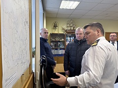 During a working visit to Arkhangelsk, the delegation of FSUE "Rosmorport", headed by General Director Sergey Pylin, visited the port infrastructure facilities in the seaport of Arkhangelsk, which are under the jurisdiction of the Arkhangelsk Branch of the enterprise, as well as the Dixon icebreaker, which operates in the White Sea during the current ice navigation season and performs icebreaking operations in the water area of the seaport of Kandalaksha.
