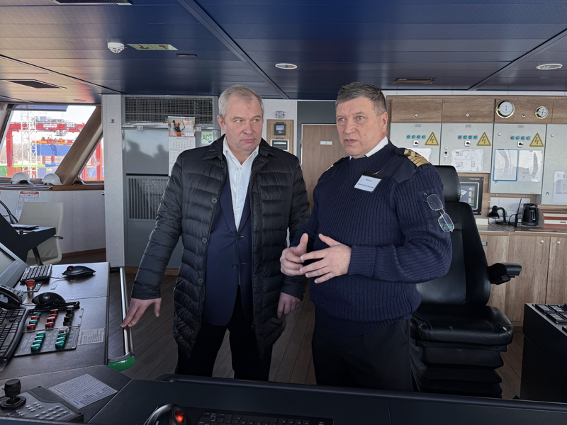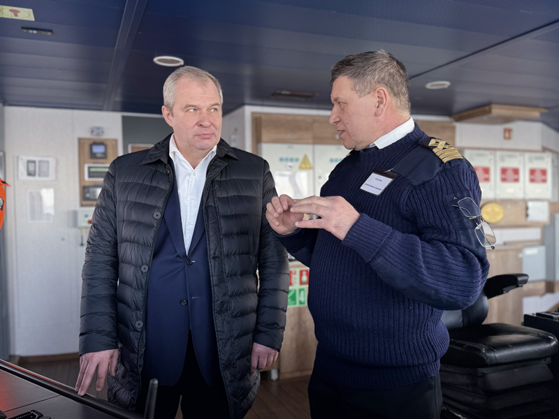 Kamil Diyarov, captain of the ferry, reported to Sergey Pylin that the vessel was fully loaded and ready for the voyage to the seaport of Ust-Luga, as well as the successful operation of the ferry in autonomous mode.