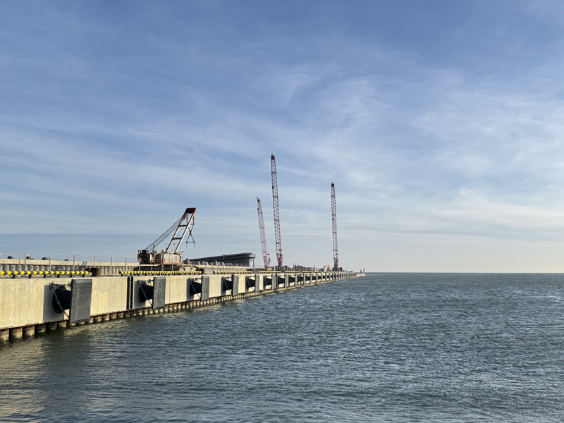 Within the framework of the state contract for the creation of federal property facilities under the control of FSI "Rostransmodernization", construction of hydraulic structures, onshore buildings and structures, engineering networks and systems, creation of artificial land plots No. 1 and No. 2 are being carried out. The construction of the passenger terminal building, radio relay mast, storm water drainage system, transport security equipment systems and development of working documentation these facilities is being carried out at the expense of FSUE "Rosmorport".