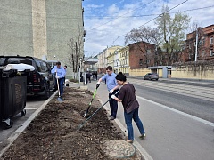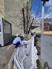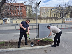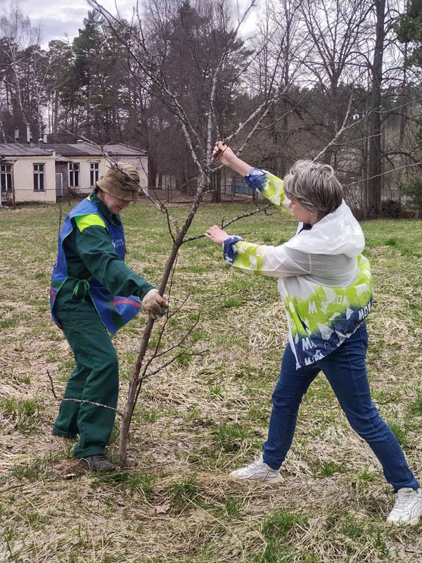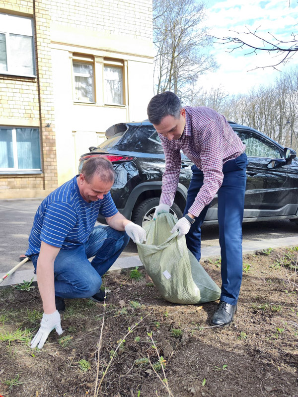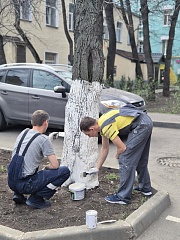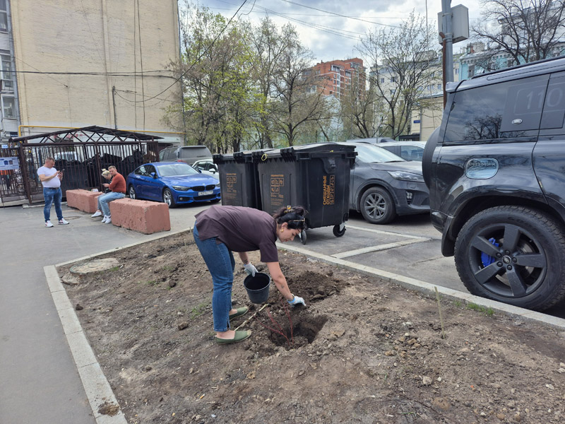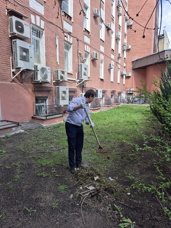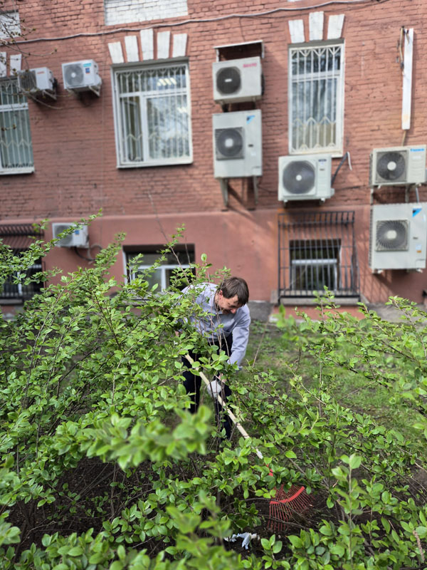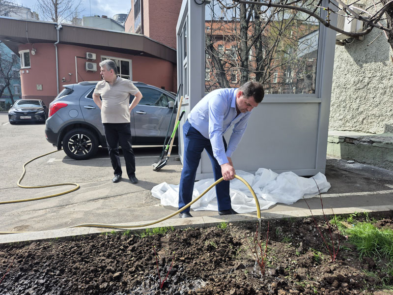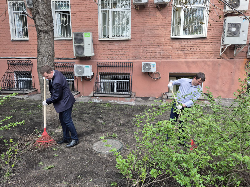A command center was organized near the central office building on Suschevskaya Street in Moscow, where tasks were defined for each participant of the event and gardening tools were given out. Workers cleaned the areas of the public gardens, limewashed trees, planted white dogwood shrubs, and seeded the parking lot lawns with grass.