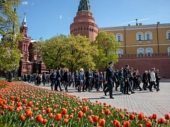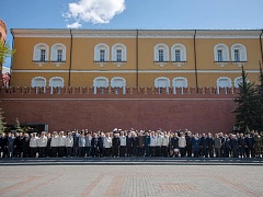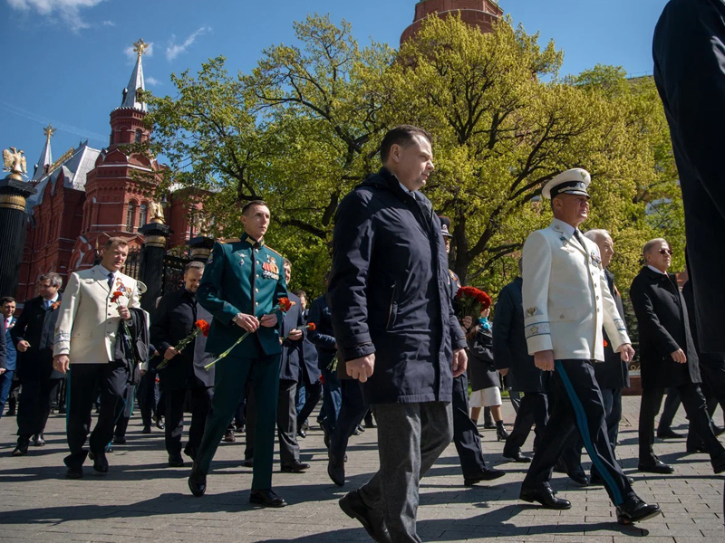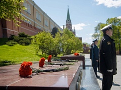 Sergey Pylin, General Director of FSUE “Rosmorport”, took part in the ceremony of laying flowers at the Eternal Flame at the Tomb of the Unknown Soldier and the memorial Hero-Cities and Cities of Military Glory in Alexander Garden on April 28 in the run-up to the celebration of the 80th anniversary of the Victory in the Great Patriotic War.