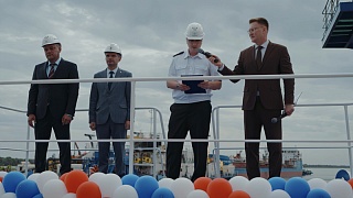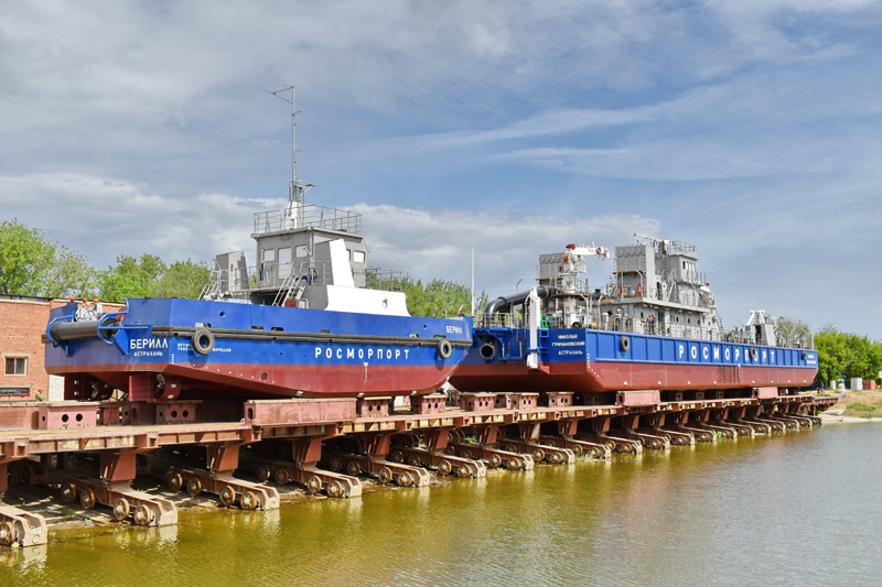 The launching ceremony was attended by representatives of the FSUE “Rosmorport” Astrakhan Branch: Deputy Director for Operations Artem Kurochkin, Chief Accountant Elena Nozhenko – the godmother of the dredger "Nikolay Grichanovsky", Deputy Head of Personnel Service Elena Fisun – the godmother of the supply vessel "Beryll".