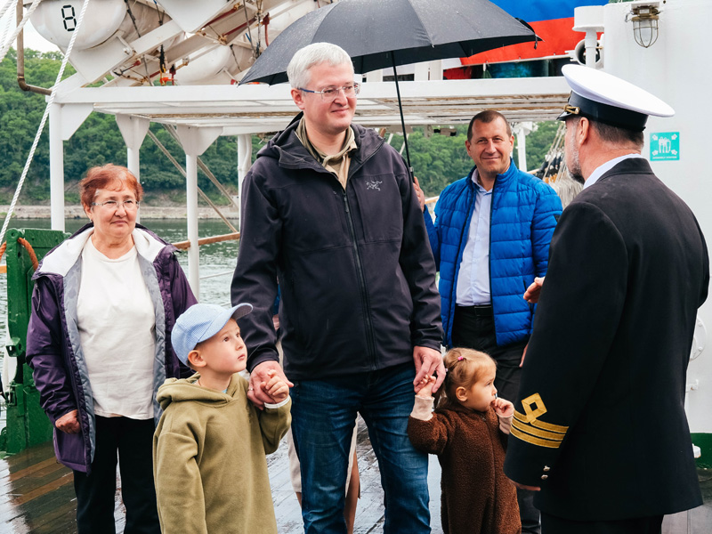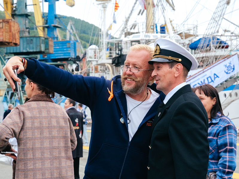 The festival was also attended by the Governor of Kamchatka, Vladimir Solodov. He interacted with guests, the crew of the training vessel "Nadezhda", and the cadets, and even boarded the ship.