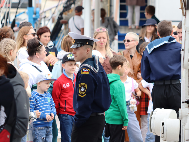 Over two days, the STV “Mir” was visited by 2,628 people, after which the vessel departed from the waters of Pionersky and headed into the Baltic Sea.