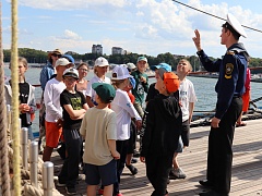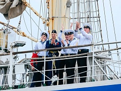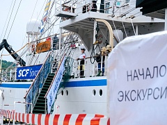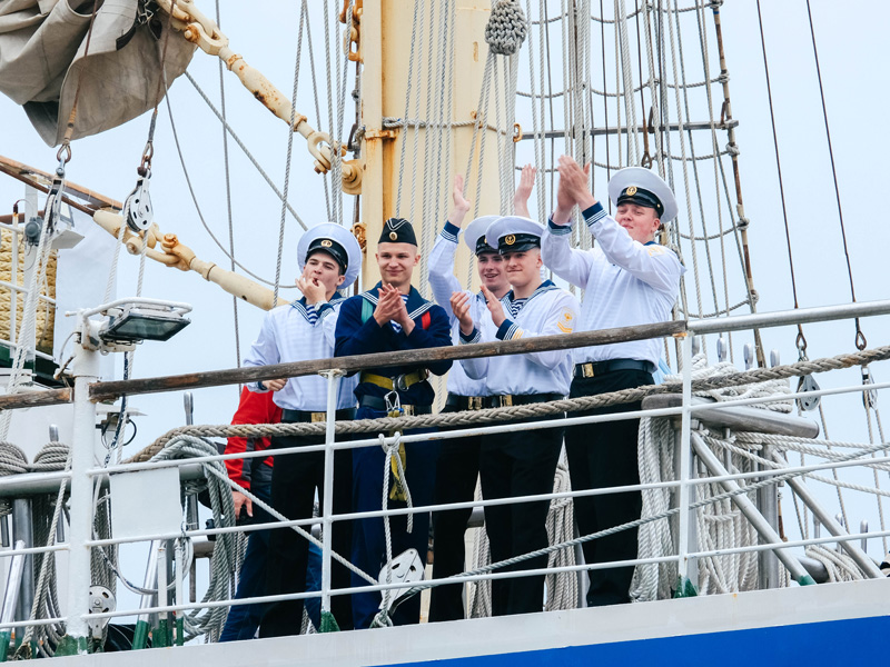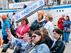 On board, the residents of Petropavlovsk were accompanied by cadets from the Maritime State University named after admiral G.I. Nevelskoy. Additionally, Captain Sergei Vorobyov of the frigate spoke on the "Open Deck" stage, sharing insights about his work and the history of the training vessel "Nadezhda", which has completed a round-the-world voyage and has won numerous international regattas.