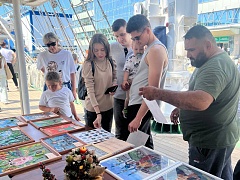 On Sunday, an exhibition of works using the technique of plasticine art, organized by the Vologda Regional Special Library for the Blind, opened on the deck. Additionally, crafts made from natural materials were delivered to the ship from Secondary School No. 4 named after Hero of the Soviet Union V.L. Saveliev (Sudak, Crimea). The exhibition was showcased as part of the "Good Returns" project by the Charitable Foundation for the Salvation of Seriously Ill Children "Line of Life".