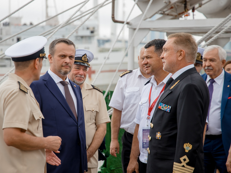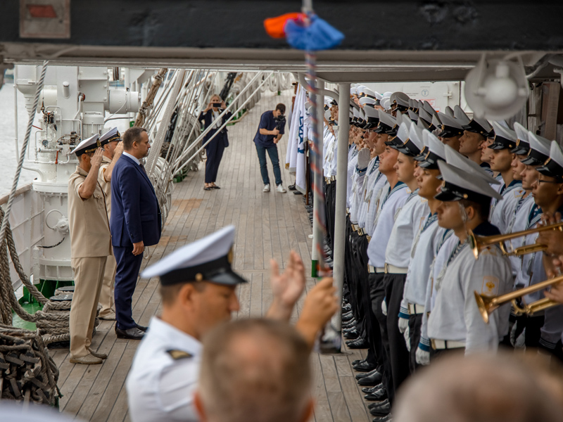 On September 4, Andrey Nikitin, Minister of Transport of Russia, visited the Nadezhda sailing training vessel, which is docked at the seaport of Vladivostok during the Eastern Economic Forum taking place from September 3 to 6.