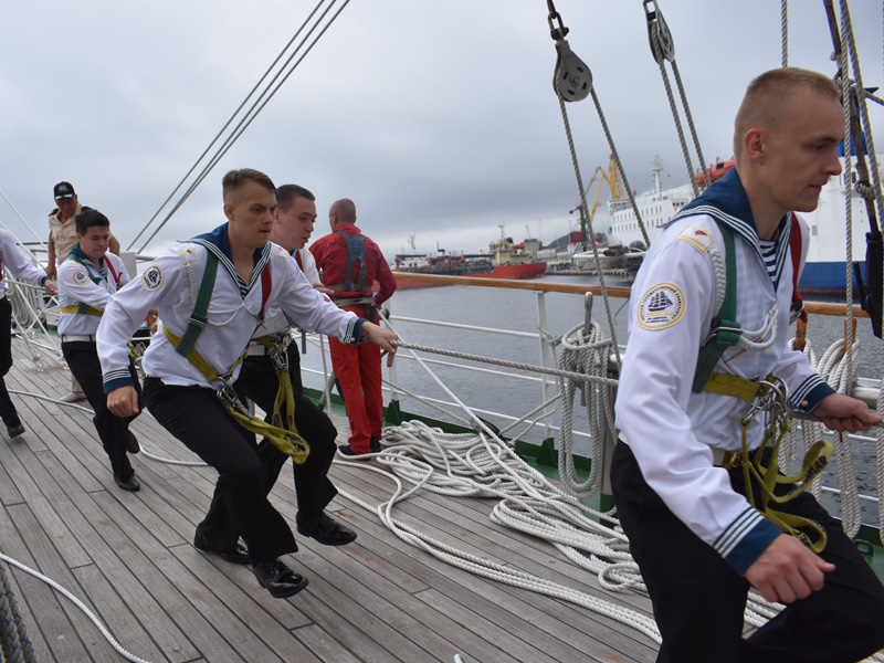 “There are currently 76 cadets from Maritime State University named after admiral G.I. Nevelskoy on board. This is already the third training session this year; 173 students have earlier completed training on the sailboat”, the captain said.