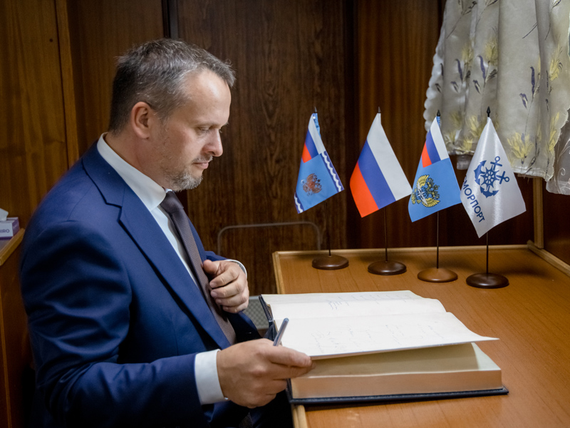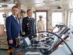 The minister boarded the vessel to the sounds of an orchestra and was greeted by the crew, led by the ship's captain Sergey Vorobyov, and cadets. Andrey Nikitin was accompanied by his deputy Alexander Poshivay, head of Rosmorrechflot Andrey Tarasenko, and General Director of FSUE “Rosmorport” Sergey Pylin.
