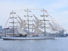The day before, the frigate was the main participant in the international EEF sailing parade in the Amur Bay. The Nadezhda sailboat led a fleet of more than 200 large and small sailing vessels. Residents and guests of the city watched the spectacular sight from the embankment of the Sports Harbor.