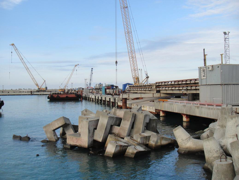 12) construction of the ferry complex berth No. 3 with length of 165 m, with a seabed level of -8.7 m designed to handle vessels with a length of 134 m, a width of 21 m, a draft of 6 m, passenger capacity of 500 people;
