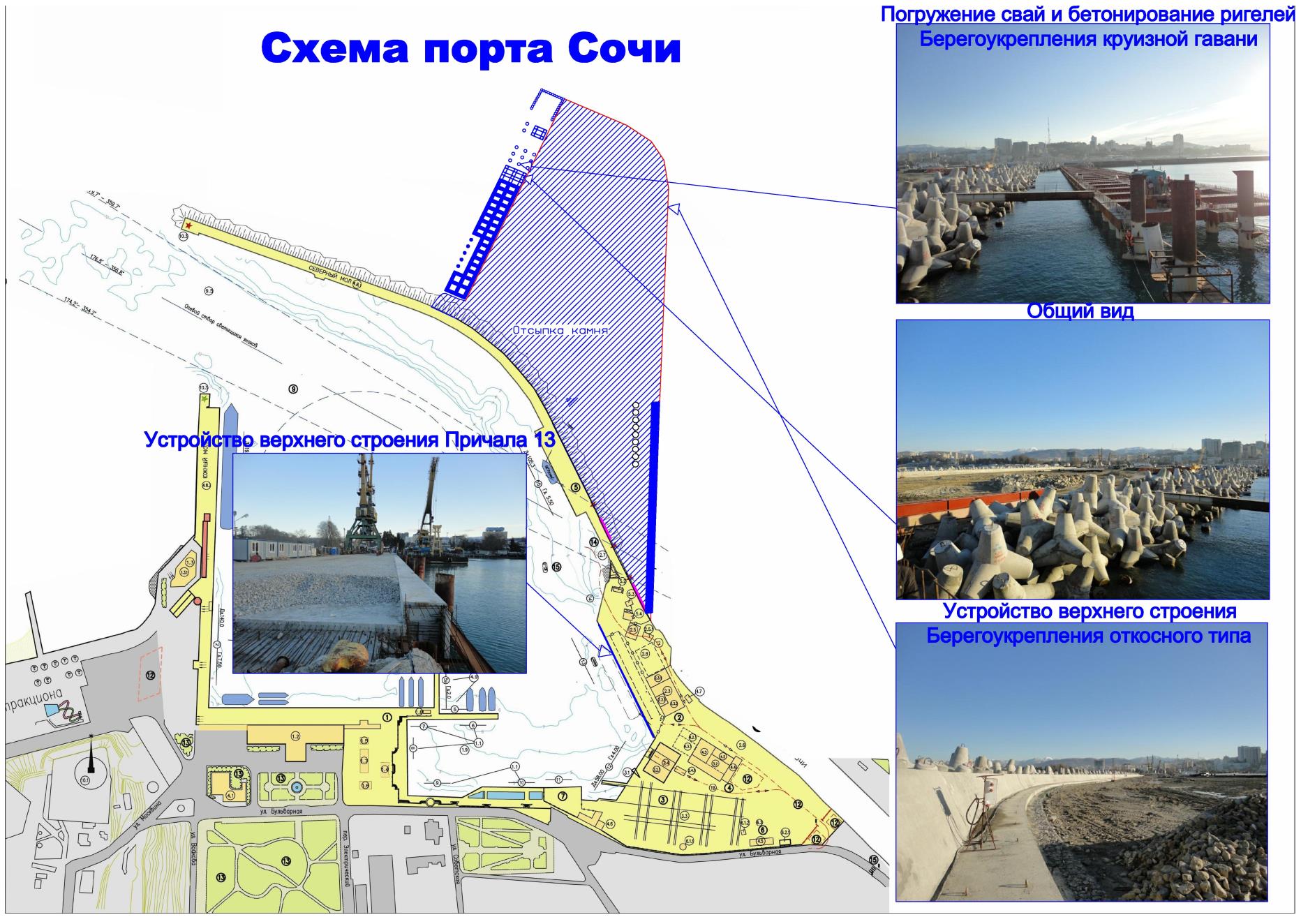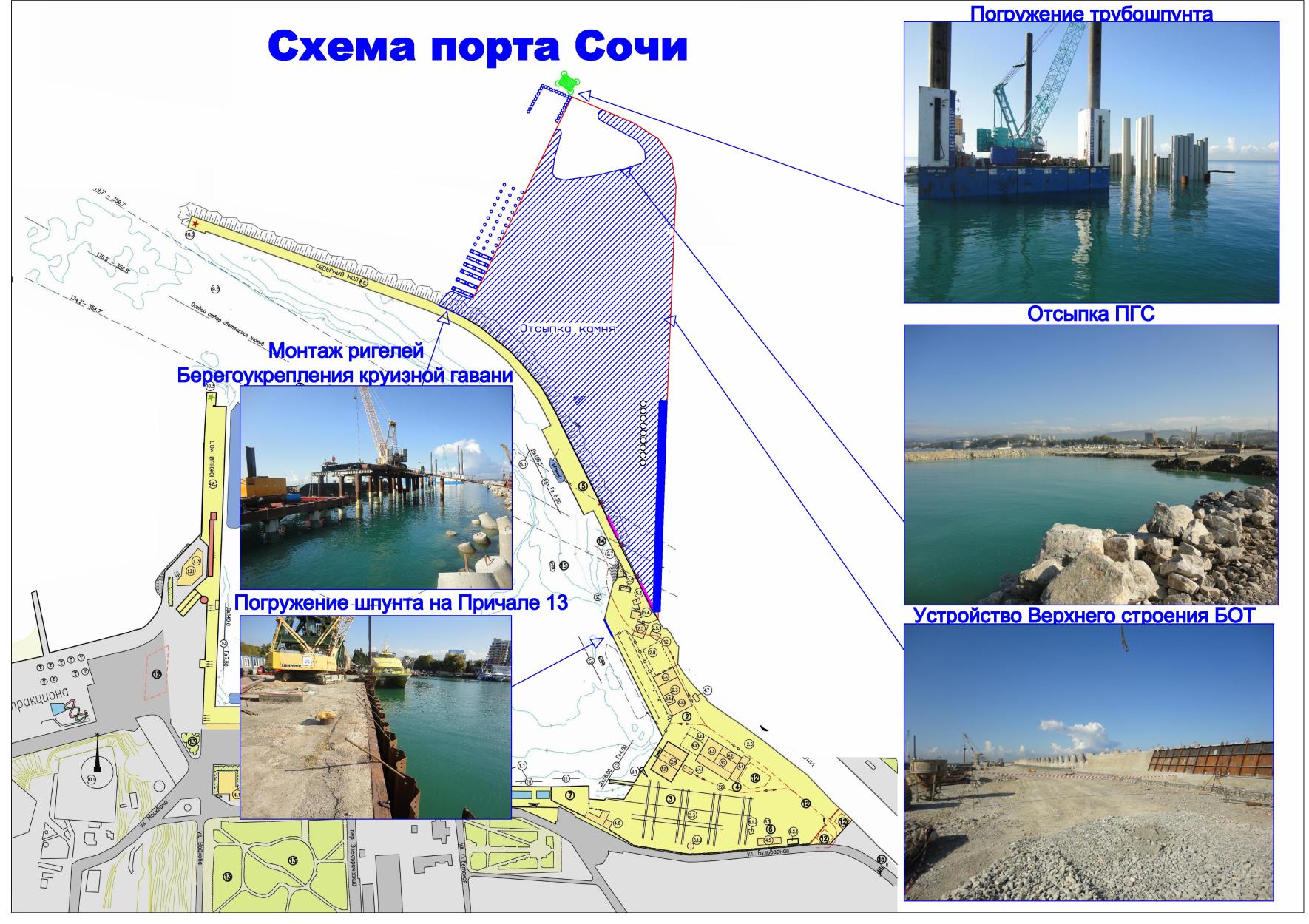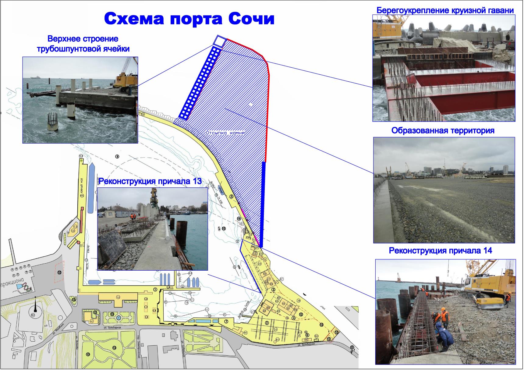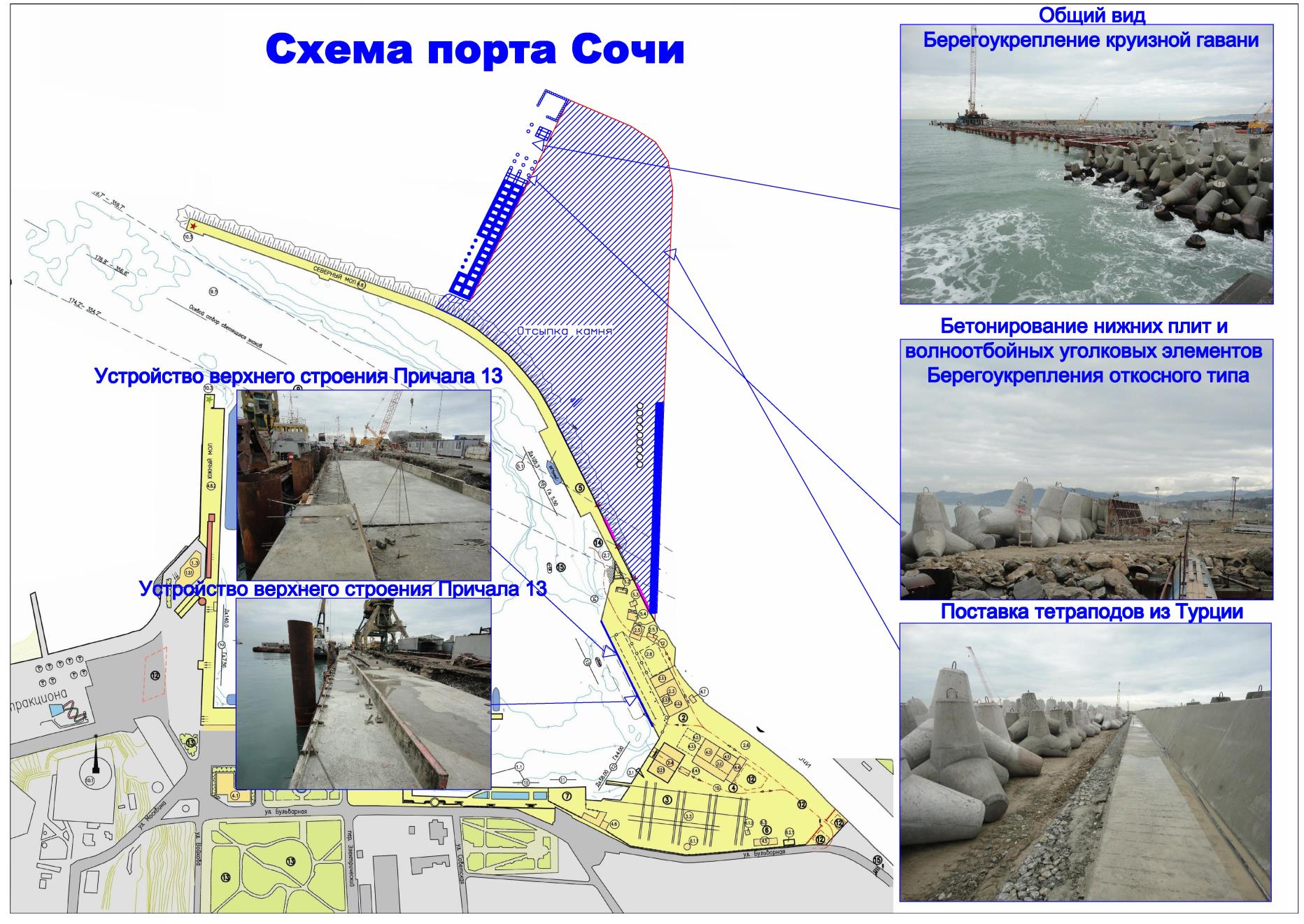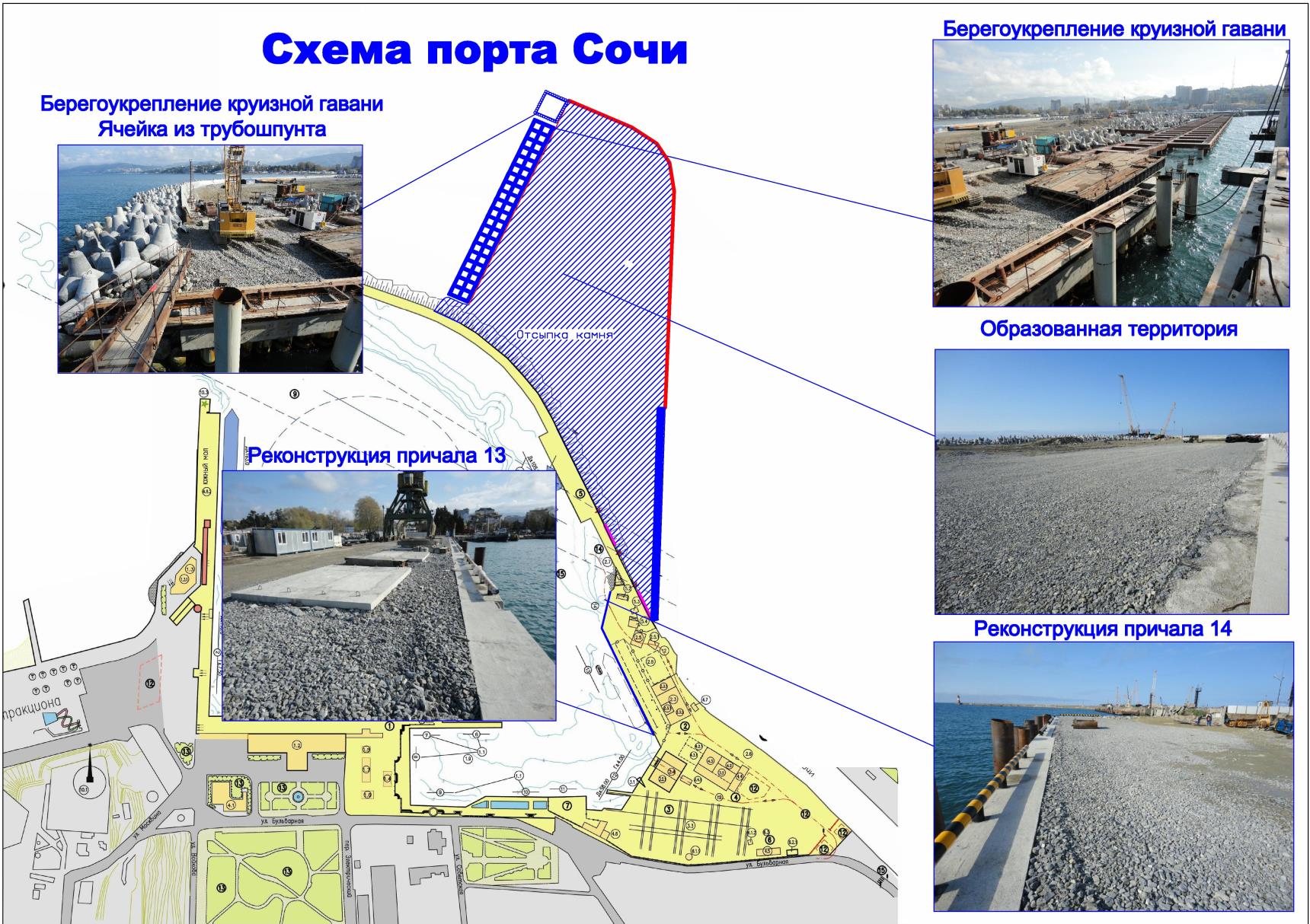 1) formation of the Seaport of Sochi operating water area of 64 hectares with a seabed level of -8.7 to -11.5 m;