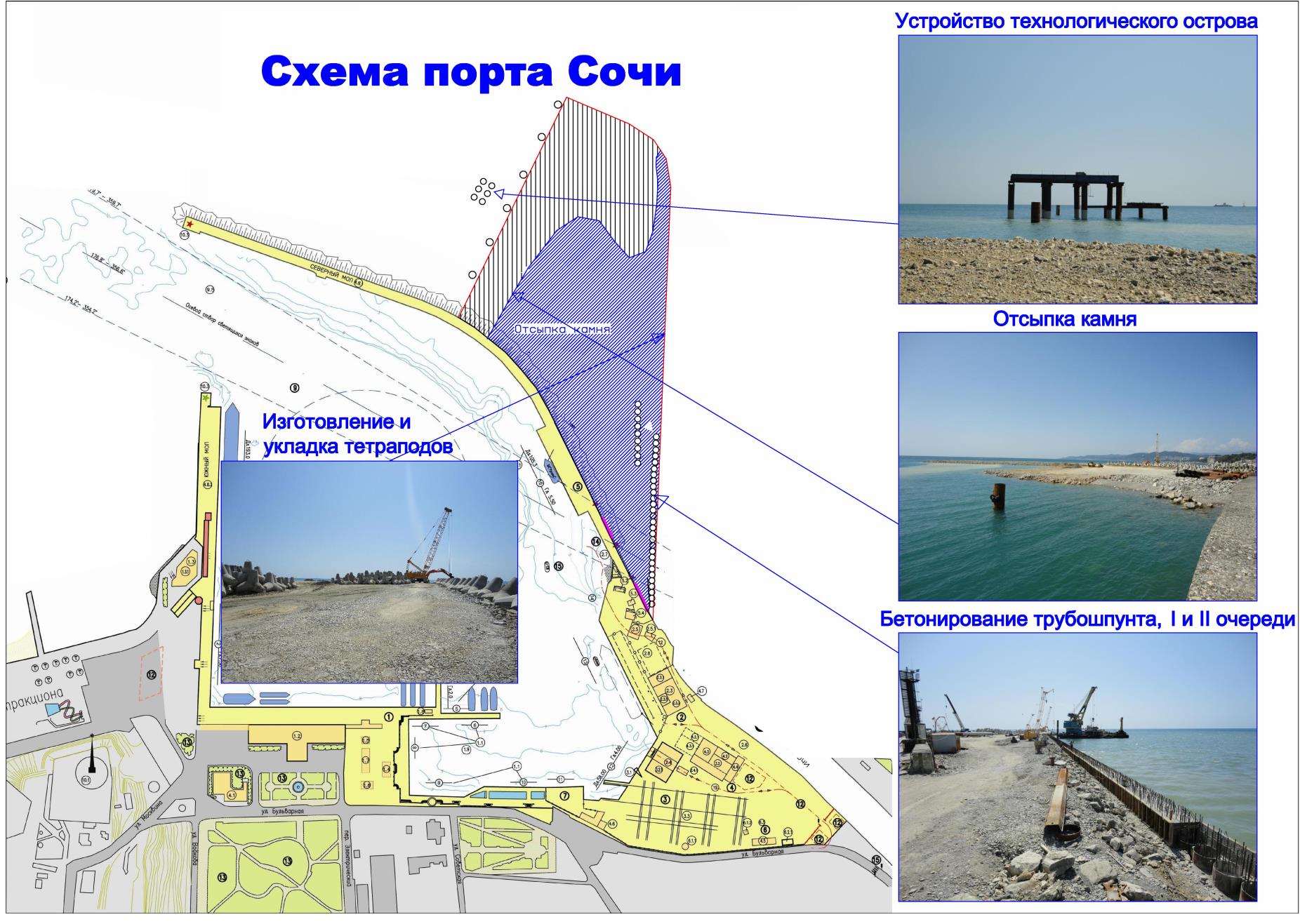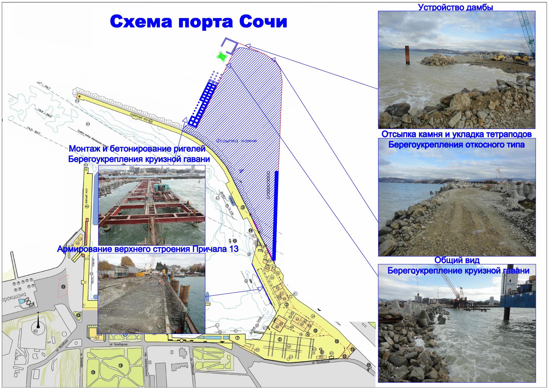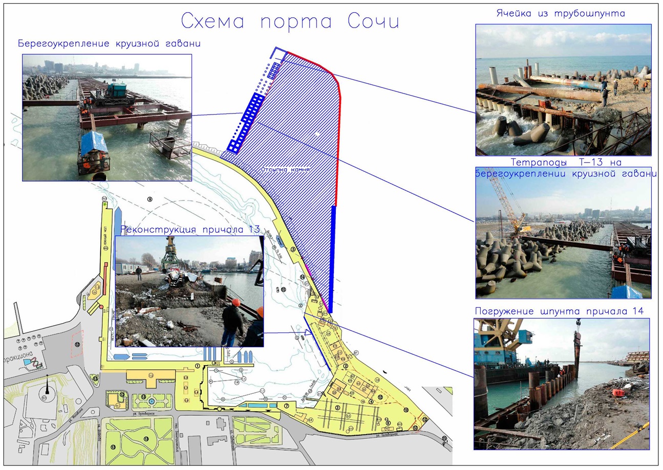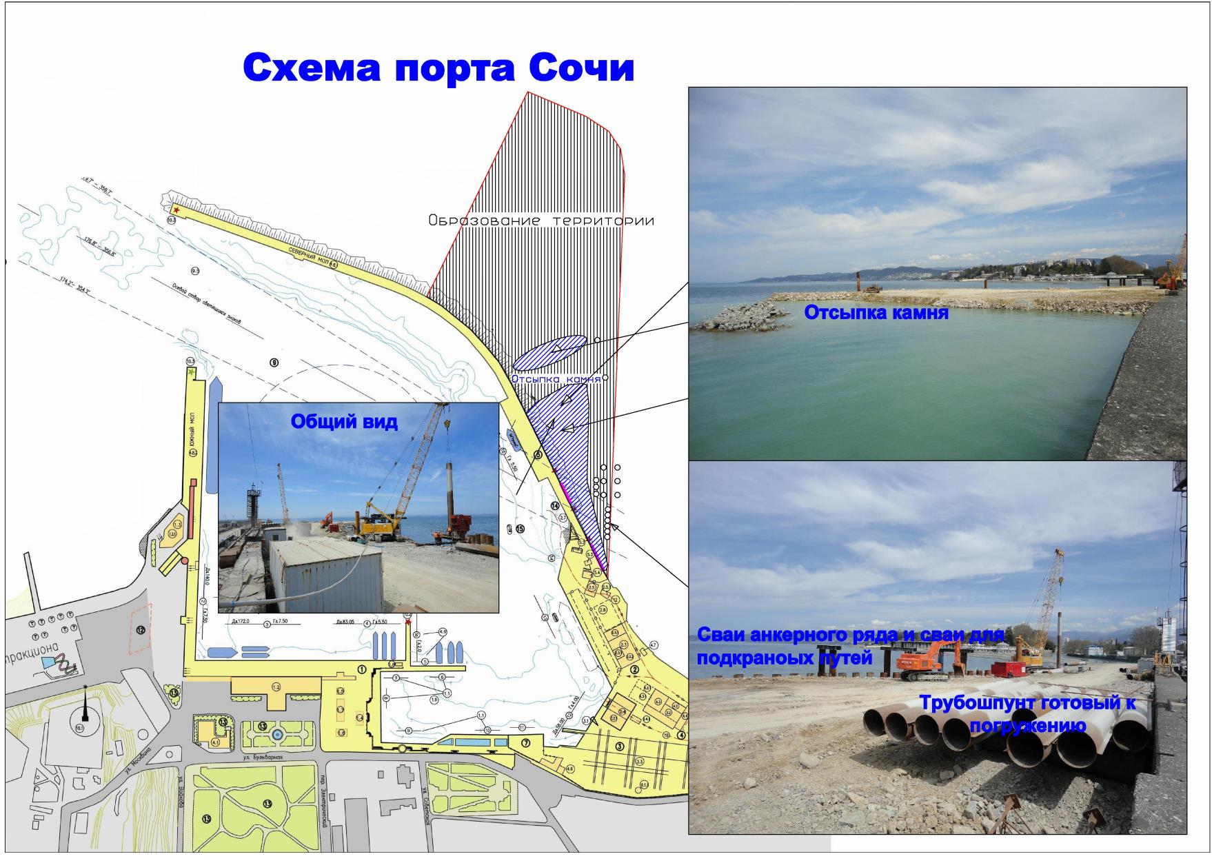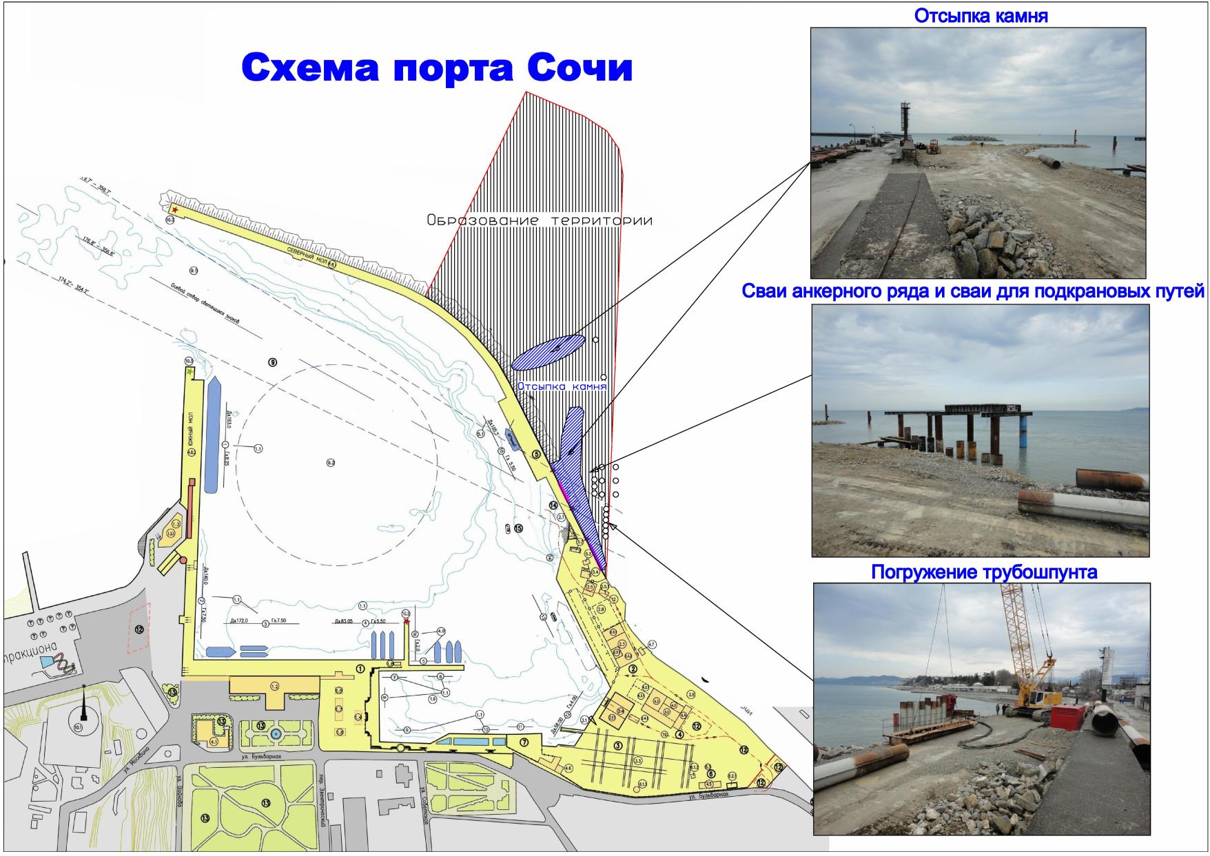 1) formation of the Seaport of Sochi operating water area of 64 hectares with a seabed level of -8.7 to -11.5 m;