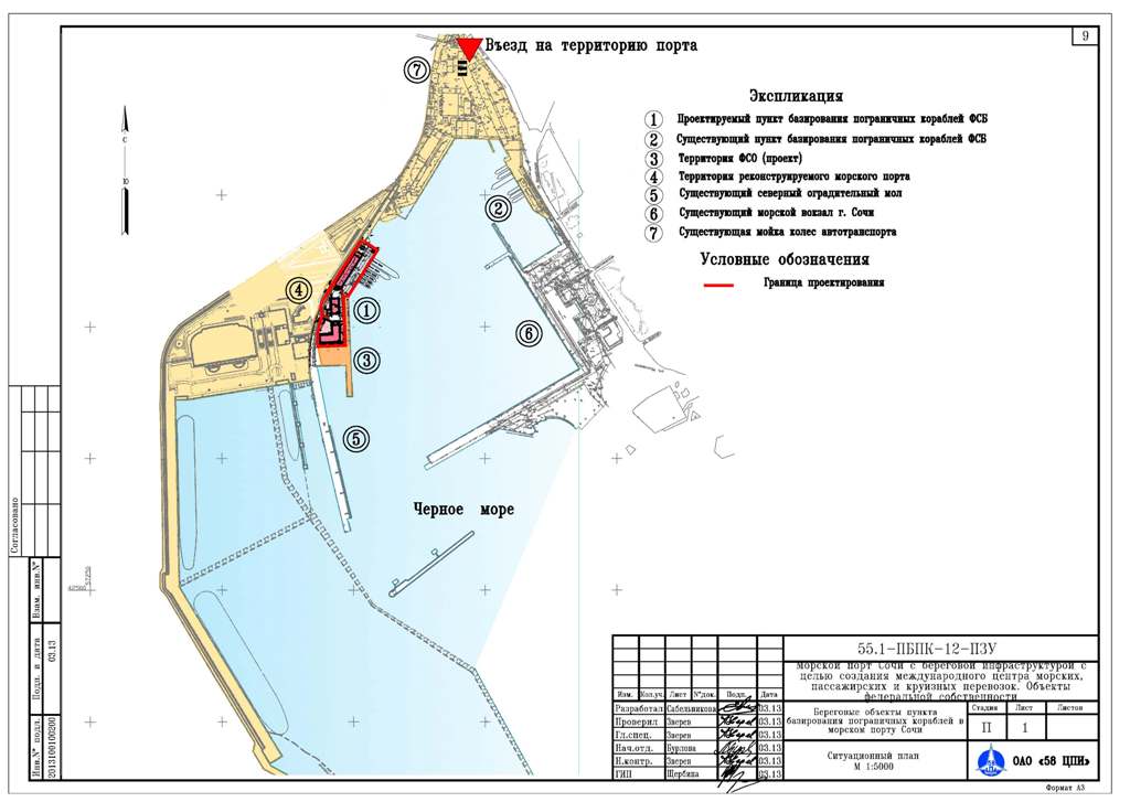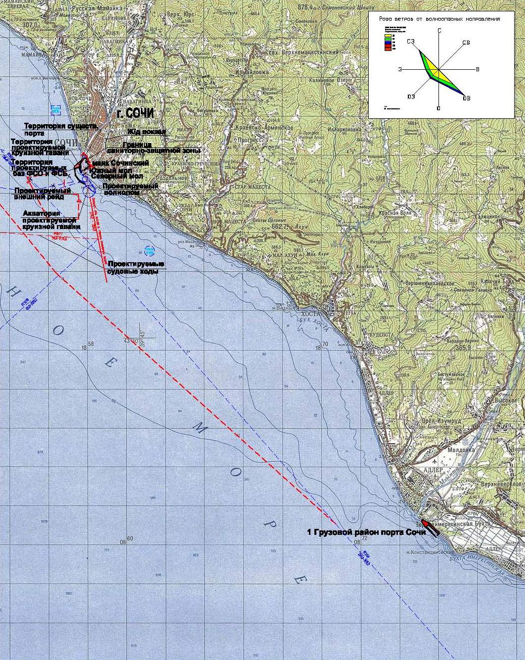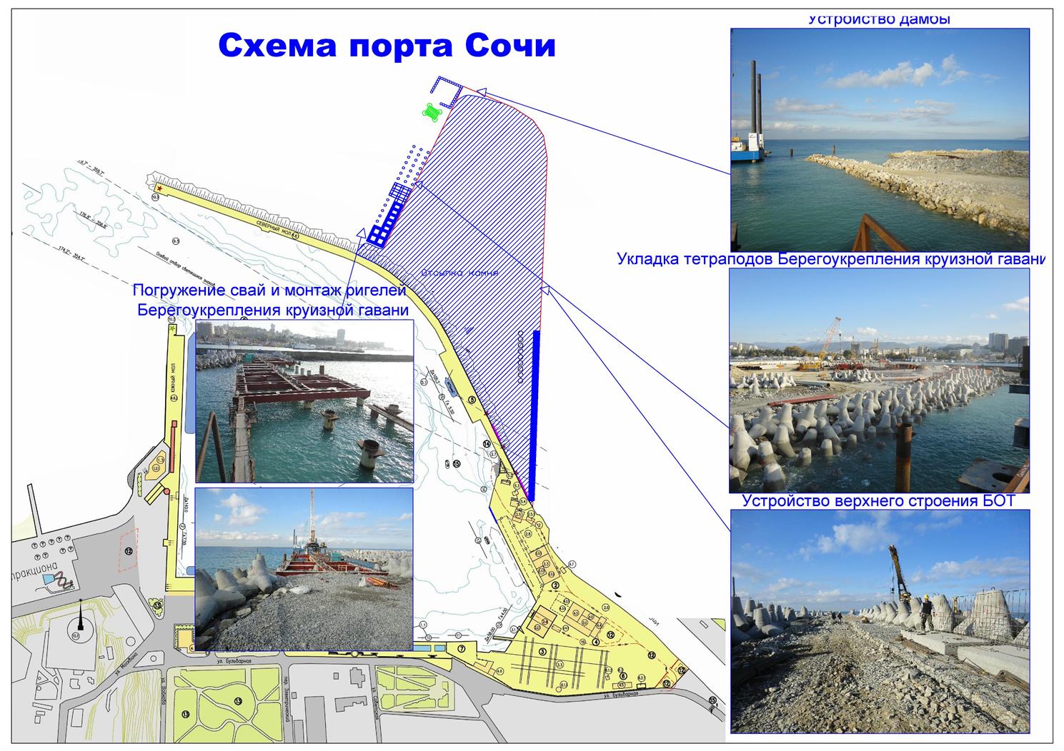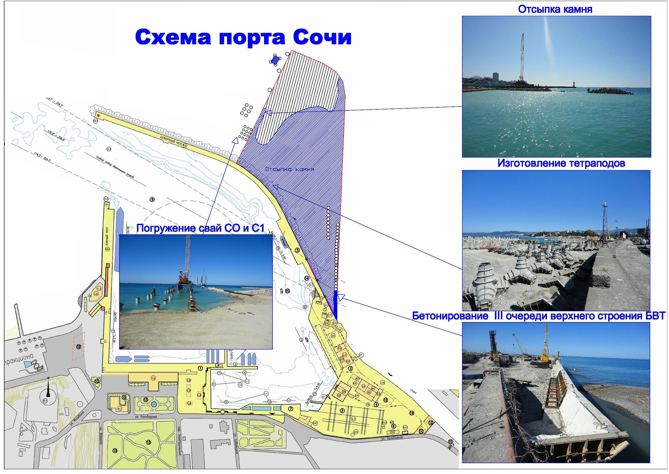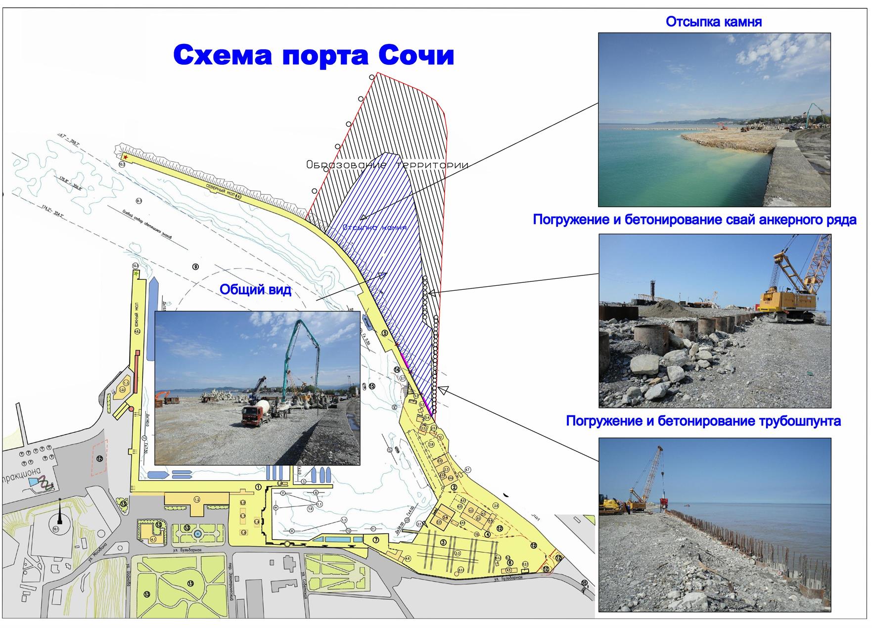 1) formation of the Seaport of Sochi operating water area of 64 hectares with a seabed level of -8.7 to -11.5 m;
