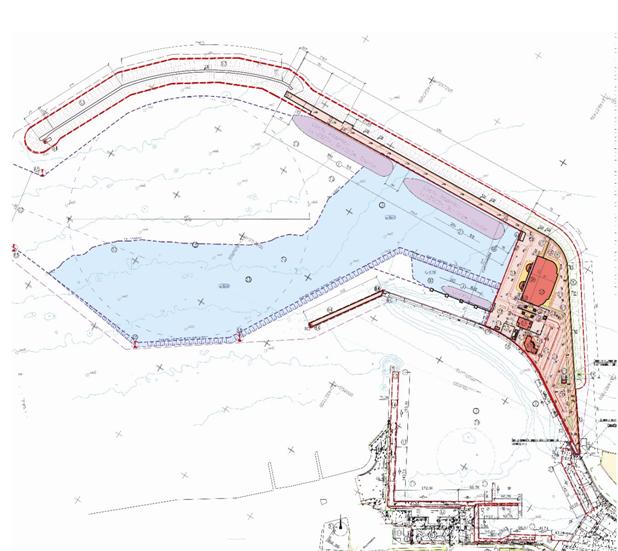 including the turning point with 446 meters in diameter and the estimated bottom level of -12 m, and a construction pit for unloading of pontoons with the following dimensions: 189 mto 254 m and the estimated bottom level of -23,5 m.