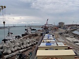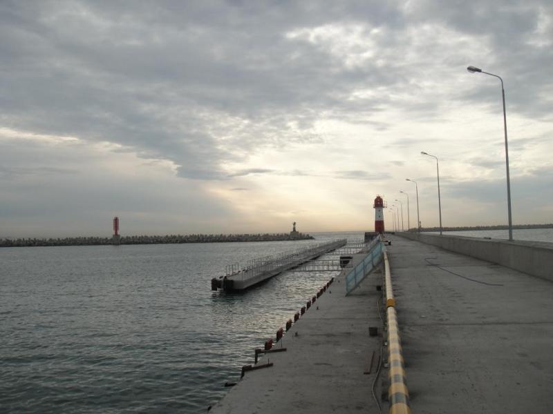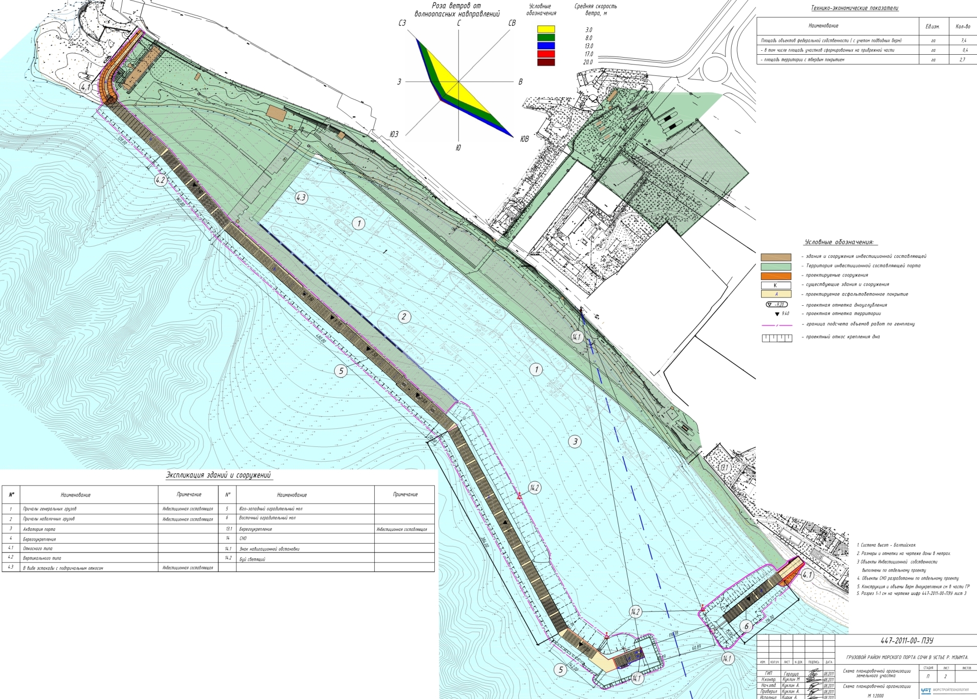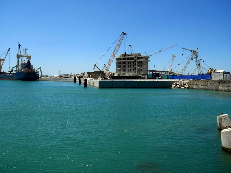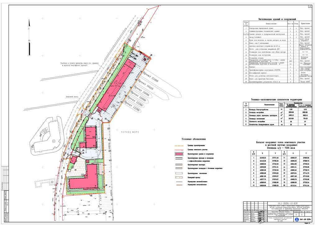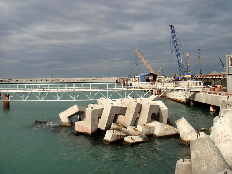 The port facilities under construction comprise an approaching canal, water areas of the auxiliary berths, coastal aids to navigation, a control-correcting station, and are designed to provide for: